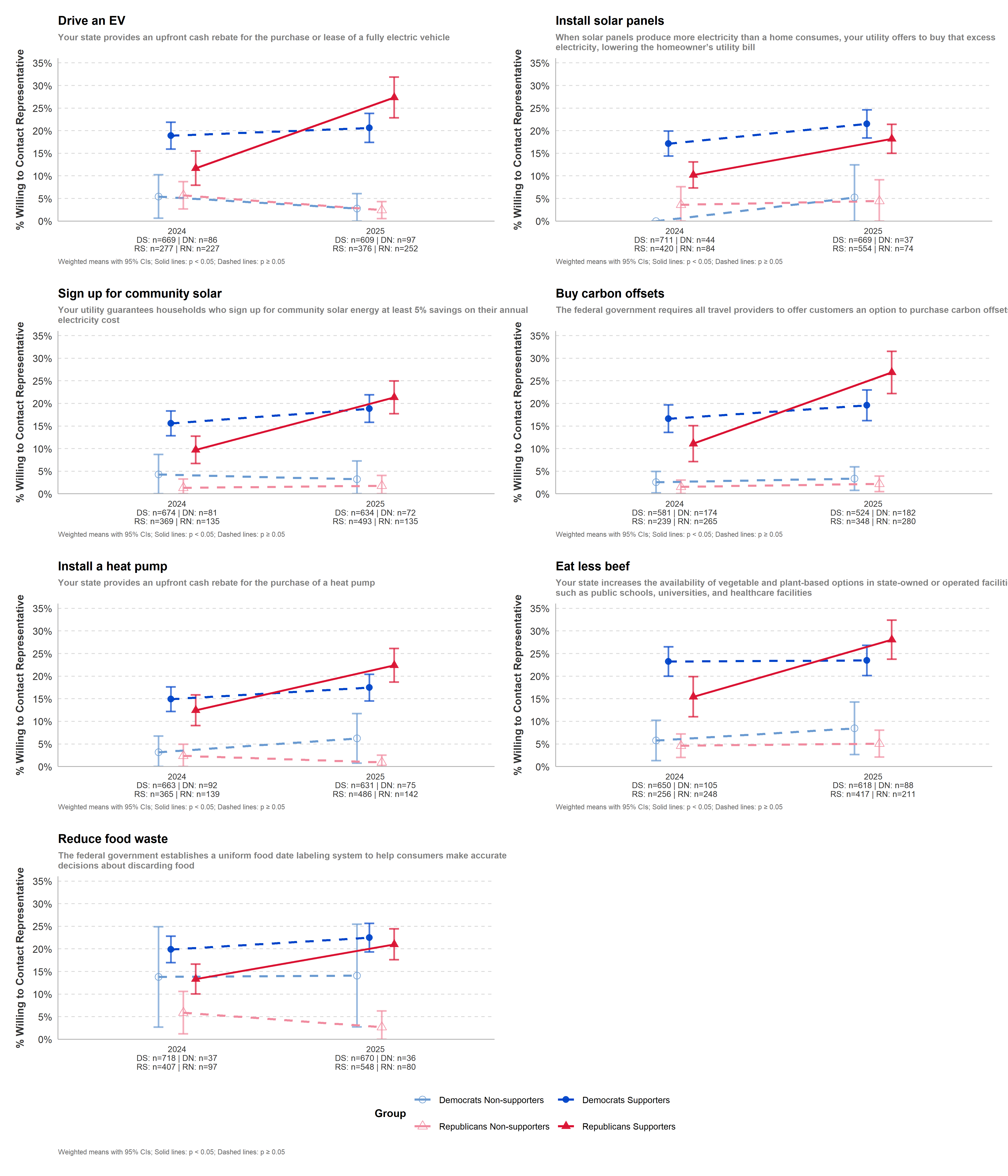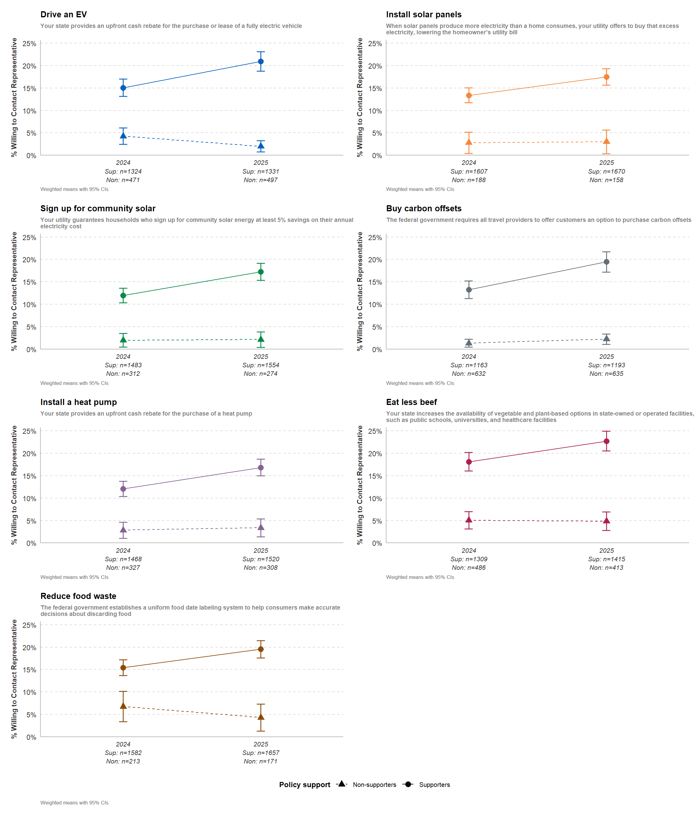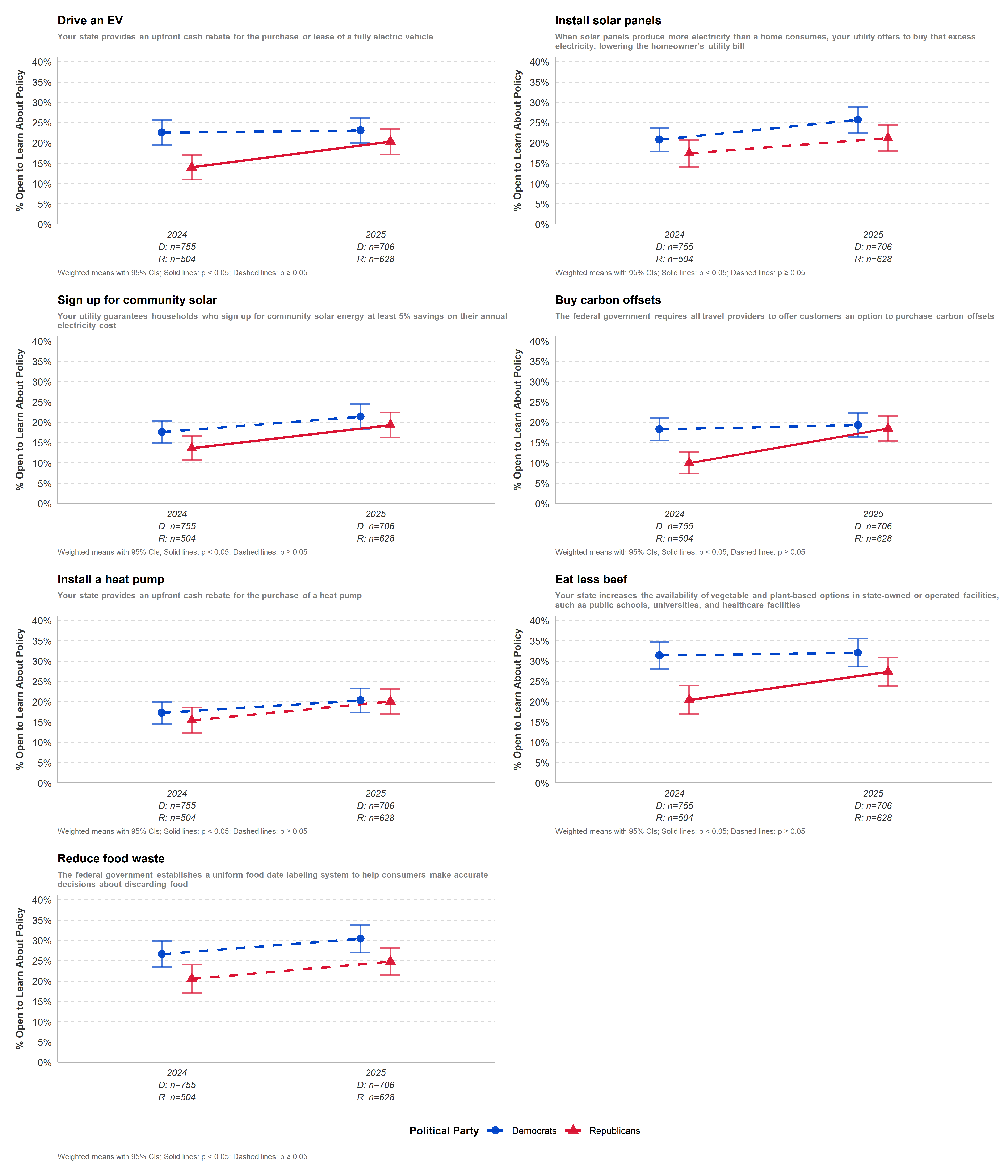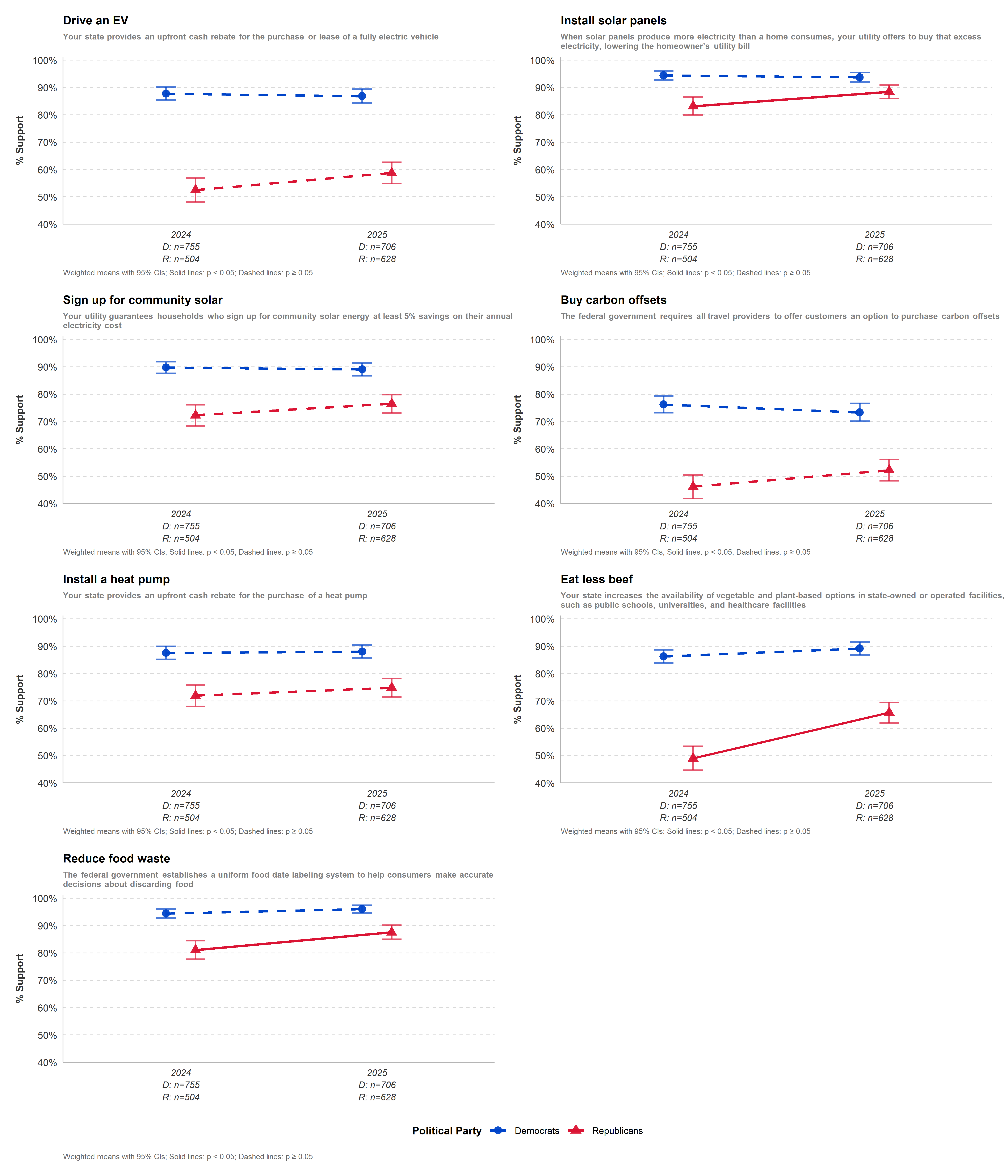 | Buy carbon offsets | Policy Support | 62.18 | 62.13 | -0.05 | -0.025 | 0.980 | — | pp | |